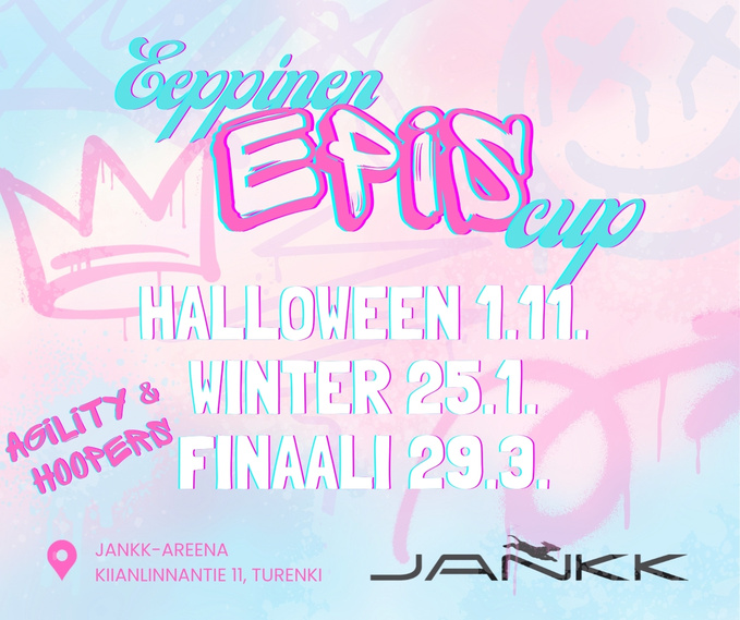 Luvassa on 3 osakilpailua, joista parhaimman yhteistuloksen tehneet kruunataan Eeppisen Epis Cupin voittajiksi viimeisen osakilpailun yhteydessä maaliskuussa 2026! Luvassa on niin agility, kuin hoopersratoja! JANKK-jäsenillä on viikon etusijailmoittautuminen, mutta myös ulkopuoliset pääsevät sen jälkeen ilmoittautumaan mukaan, myös CUP on avoin kaikille!